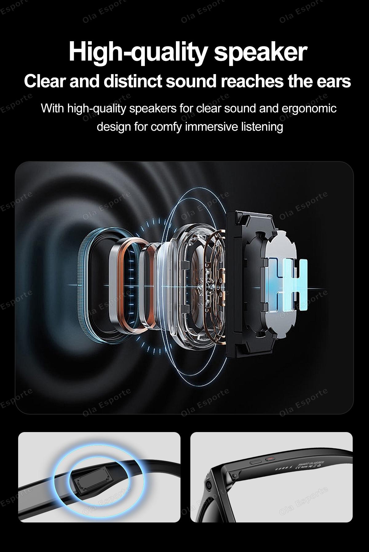 AI photo-taking and video recording fashionable smart glasses: A1 photo recognition, answering questions, taking photos, recording videos, AI dialogue interaction, Bluetooth calls, local music playback (switching, pausing music), low power consumption W20 main control chip, long-lasting battery life, dual physical buttons and dual touch buttons for convenient operation, 35g lightweight overall weight for comfortable wearing, customizable sunglasses, blue light protection, myopia, and other lenses, 260mAh large battery, IP65 dust and water resistance, ultra-low power consumption (supports continuous recording for over 2 hours without heating). Integrated with ChatGPT's advanced model, high accuracy in image recognition. Master Chip:Low power consumption, low latency - Shenju W20 Waterpfoof Level:IP65 dust - proof and water - resistant