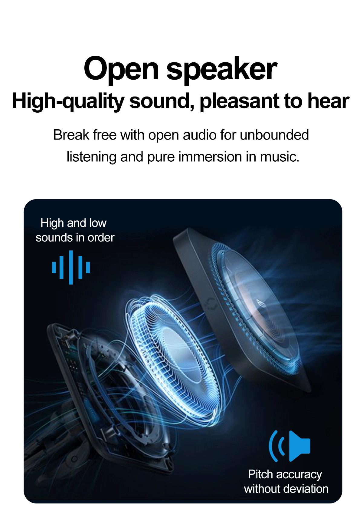 Product Model:S336 Platform: Jieli+Quanzhi Dual Chip Chip: JL7018F Bluetooth : S336 Bluetooth version: V5.4 WIFI:V821 Speaker: Dual Speaker MIC: Dual microphone noise reduction Photo: 2000W pixel, 1080P video, 30 frames per second Camera Pixel: 5 million pixels (default 1080P supports 2K video recording) 30fps Storage: SD NAND patch/32Gb Wear detection: supported Data transmission (photo, video, recording): WIFI Battery: 220mAh Charging method: 2pin magnetic charging Indicator lights: 2 (status indicator lights) LED flash: 1 unit Charging time: about 2 hours Standby time: 4-7 days Call duration: about 7 hours Photo duration: greater than 1 hour Video recording duration: greater than 1 hour Playing music for approximately 7 hours APP:HeyCyan