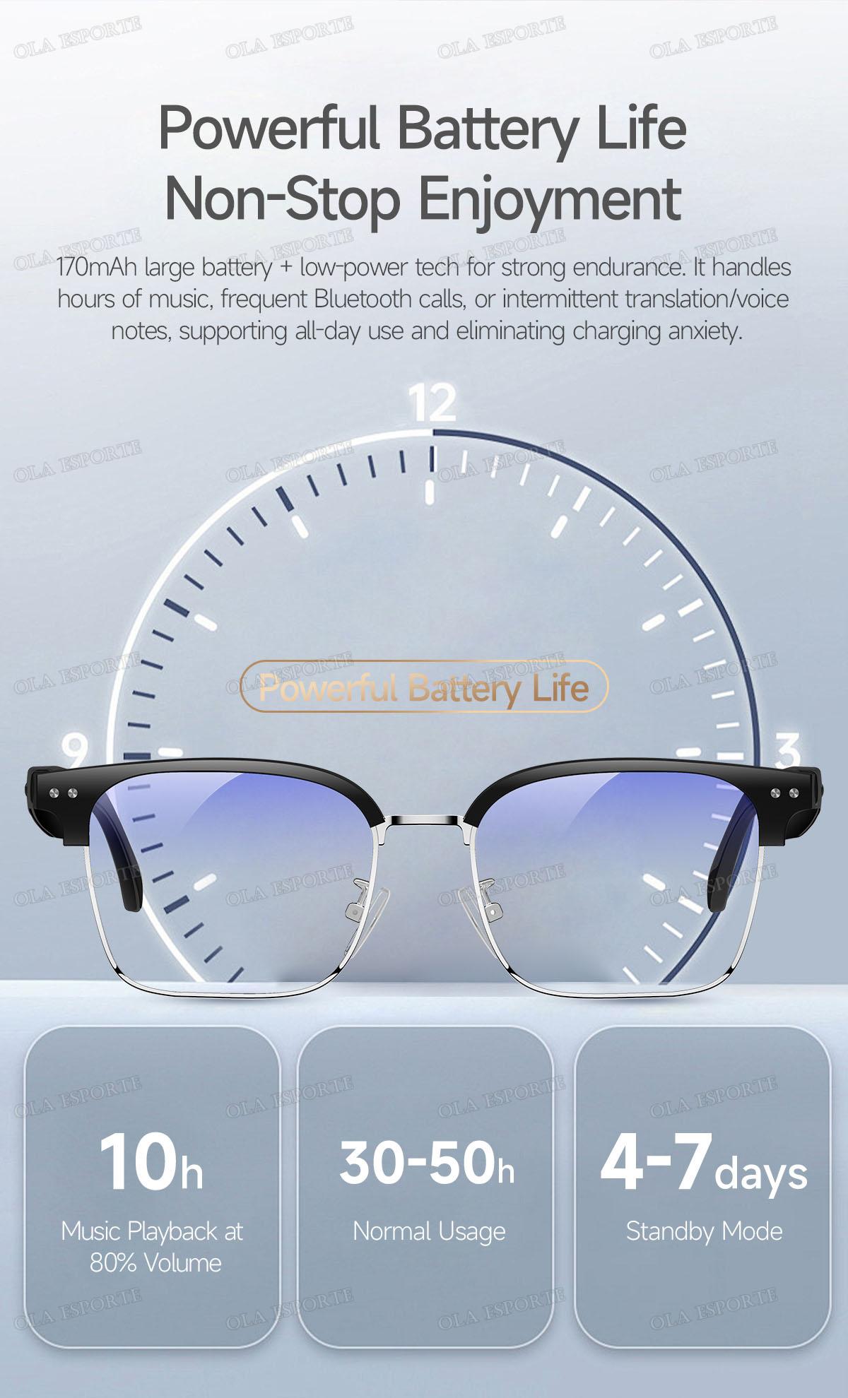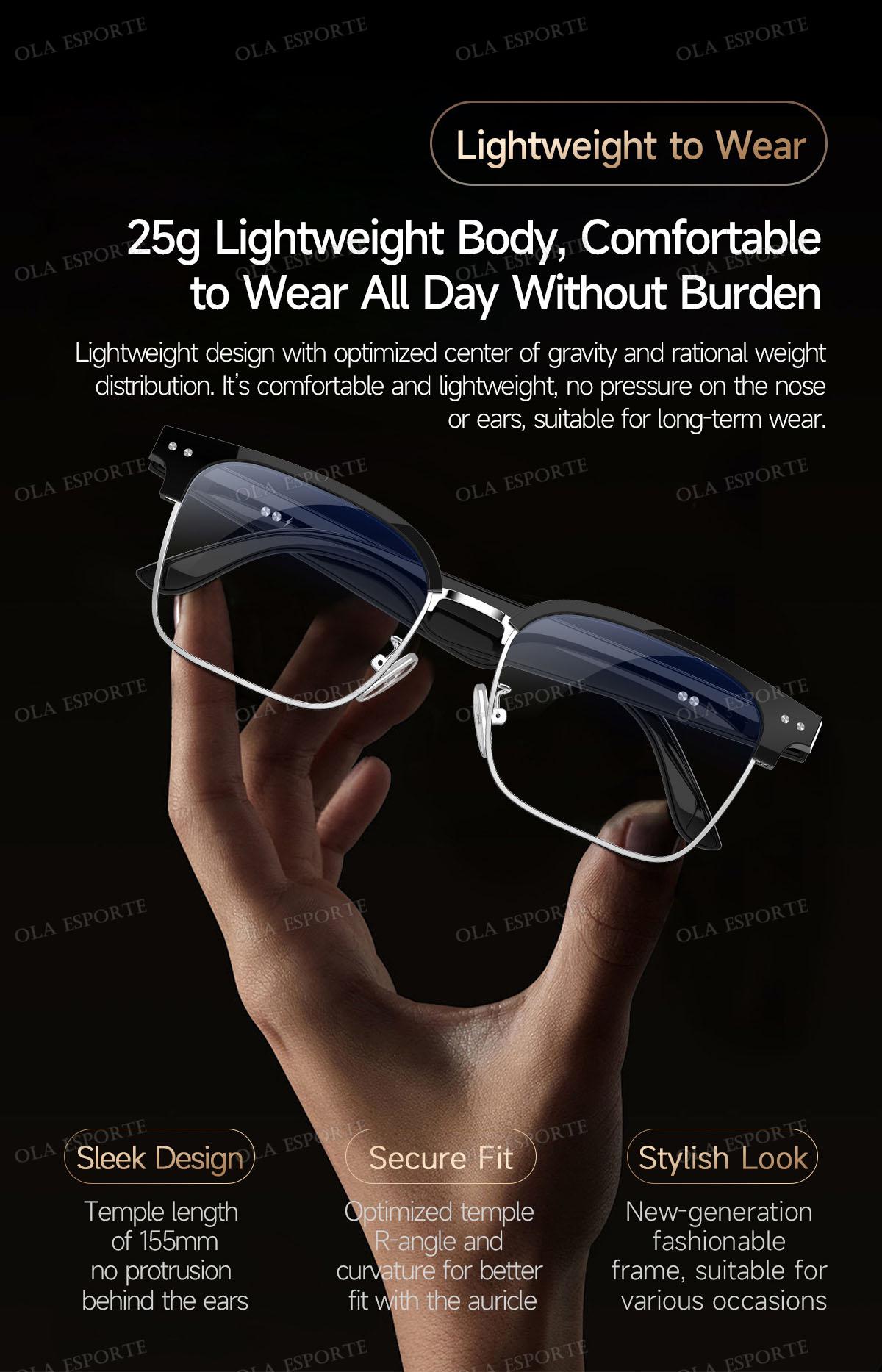 The smart glasses come with an intelligent Hall-effect sensor that automatically turns the device on/off when you put them on or take them off.