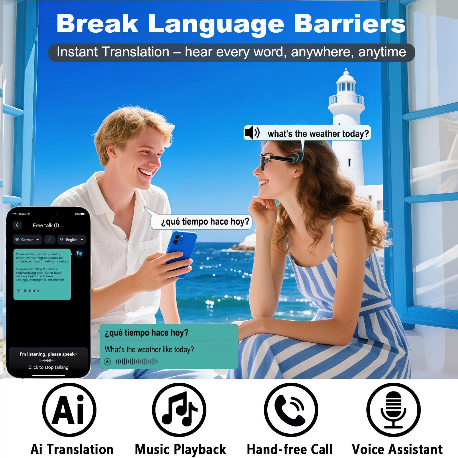 New AI smart translation glasses with photochromic lenses, supporting real-time app translation in 164 languages.