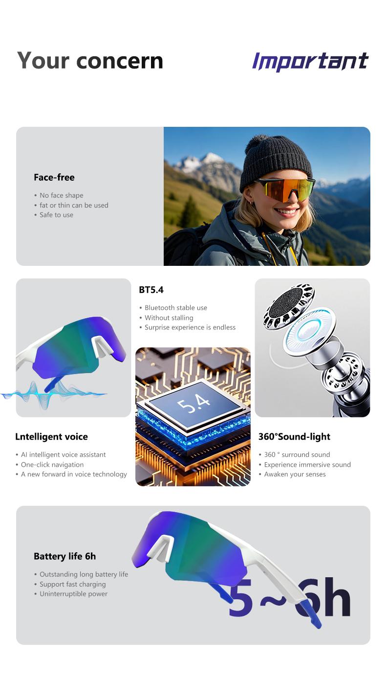 QY-Pro2 Smart Bluetooth Glasses AI Intelligent Translation Voice Notes Remote Control Photography Music Eyewear Waterproof Eyeglass