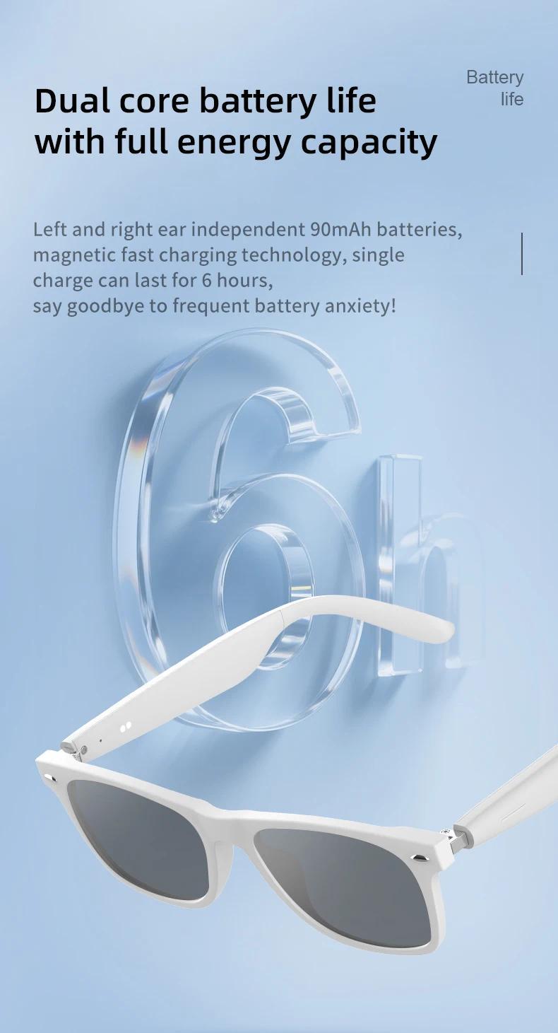 • 144-Language Real-Time Translation Effortlessly translate between 144 languages(covering 98%of global languages)with advanced neural network technology, ensuring smooth and natural conversations. • Stable Bluetooth 5.3 Audio Enjoy a rock-solid connection within 12 meters, featuring dual-channel high-definition audio transmission, ideal for calls and music during physical activities. • Sporty Sunglass Design Lightweight at just 34g, with UV400 polarized lenses and anti-slip nose pads, combining sun protection with smart functionality. • Premium Sound System Equipped with 16x9mm titanium-coated speakers,delivering studio-quality sound and adaptive noise reduction for seamless transitions between calls and music. • Durable and Reliable A 90mAh fast-charging battery(30-minute charge for 4 hours of use)and IPX4 water-resistance rating ensure durability against rain and sweat.
