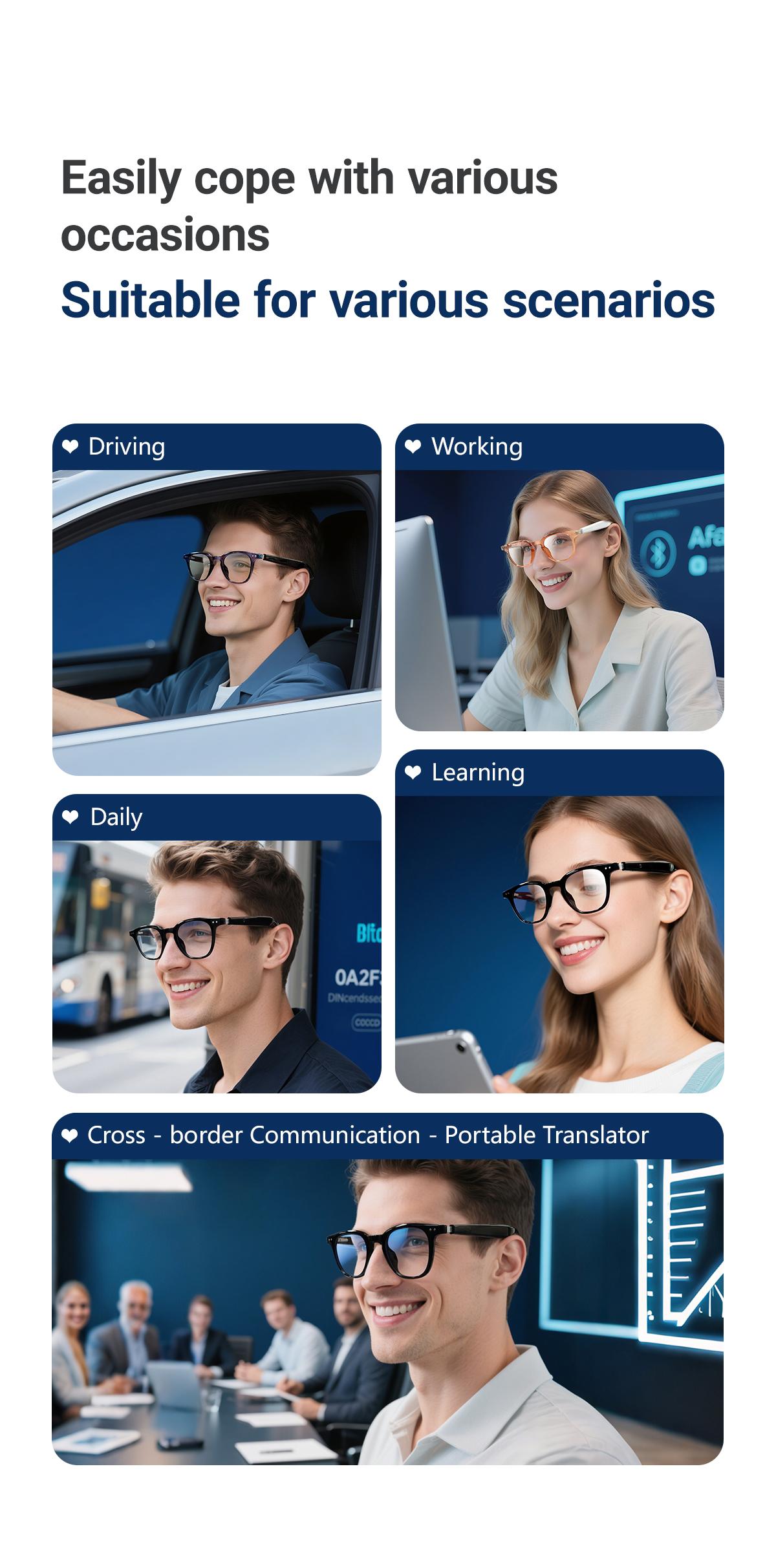 * Smart Glasses Design and Lightweight 35g(excluding lenses): Design has a lightweight 35g made, making it perfect for all-day wear.