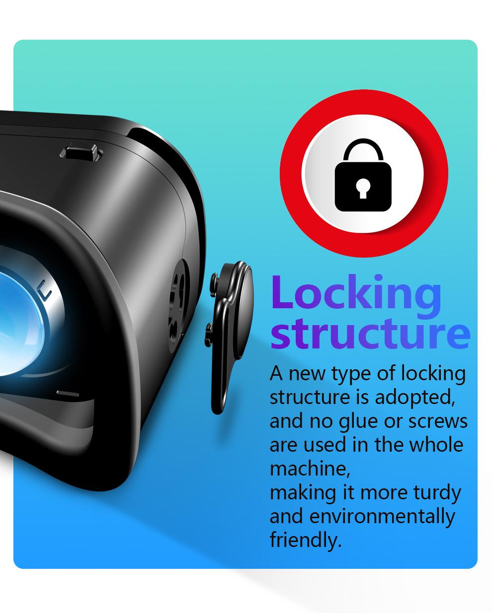 Features: The product is a 3D glasses combining watching movies and playing games, which can turn the mobile phone into a cinema /3D game hall.The product does not need to be charged. Put the mobile phone into the VR glasses, download 3D video, orange VR and other mobile phone players to watch 3D movies online or cache for free. Independent lens adjustment, adjustable knob for pupil distance, object distance adjustment, myopic people available It can be used together with the handle to experience panoramic immersive 3D world Removable sponge eye mask, soft and comfortable to wear, natural fit, easy to clean. Light body, the appearance is not only simple atmosphere, but also convenient to carry. Description: Color: Black Material: PC Model: VRG Q8 Main feature: 1. With detachable [large screen frame], large and small screen mobile phones are available (maximum support for 7 inch screen mobile phones). 2. With 120 degree wide-angle lens, the immersion is better. Myopia within 3.800 degrees can be viewed with naked eyes 3.5~7 Inch mobile phone is compatible 4. Full screen vision, no more black box effect when watching movies Packing list: 1 X VR glasses 1 X Glasses cloth 1 X Manual ADJUSTABLE WITHIN 800 DEGREES OF MYOPIA Myopia can be adjusted within 700 degrees and myopia users within 800 degrees can be seen naked without wearing glasses. Myopia can be used with naked eyes within 700°
