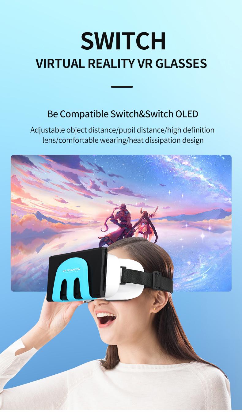 Product model:G11 Lens:prism PMMA aspheric lens imported from Japan Lens diameter:40mm Horizontal field of view (FOV):100-100 System capable of support wearing glasses to watch and double adjustment of pupil distance and object distance Product material:ABS Product net weight:205g Product color:white body+blue bracket Degree of adaptation to myopia:below 600 degrees Compatibility information:compatible with switch&switch OLED.