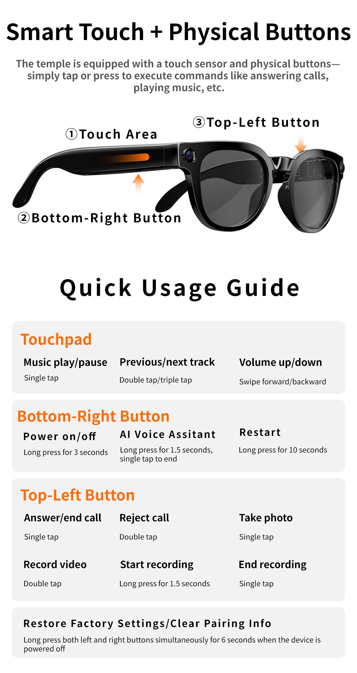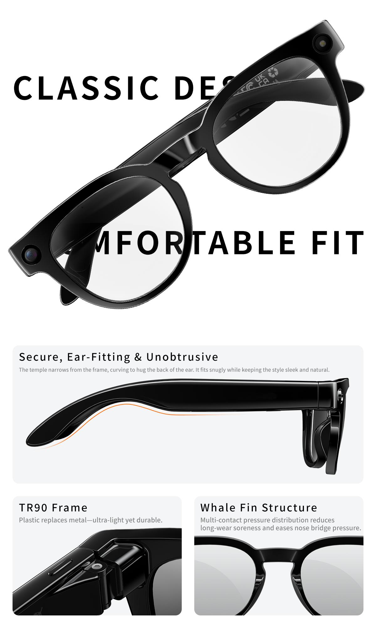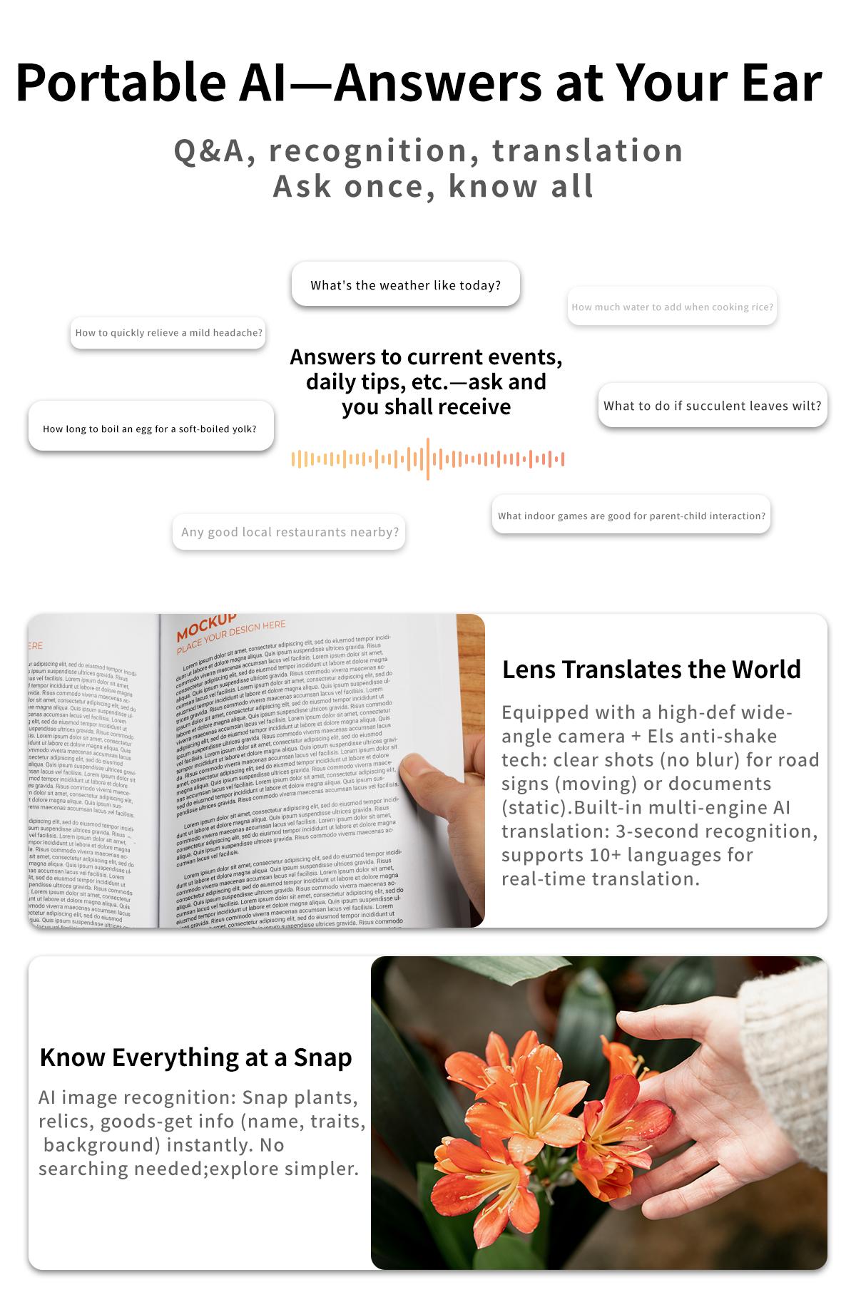 【Powerful Configuration】Sony 8-megapixel camera (interpolated to 32-megapixels) + dual main control chips, IP65 waterproof + long battery life, fully equipped! 【AI Full Buff】Voice instantly awakened, can recognize objects in photos, real-time translation + low-latency questioning, intelligent and directly "understands" you! 【All-in-One Device】Stabilization for shooting and recording + dual WIFI for image transmission, Bluetooth for calls (with noise reduction) + music streaming, covers all scenarios! 【Lightweight Experience】Full body made of TR90 material, 38g ultra-light + dual control with buttons/touch, freely changeable color cases, comfortable wearing and high appearance quality!