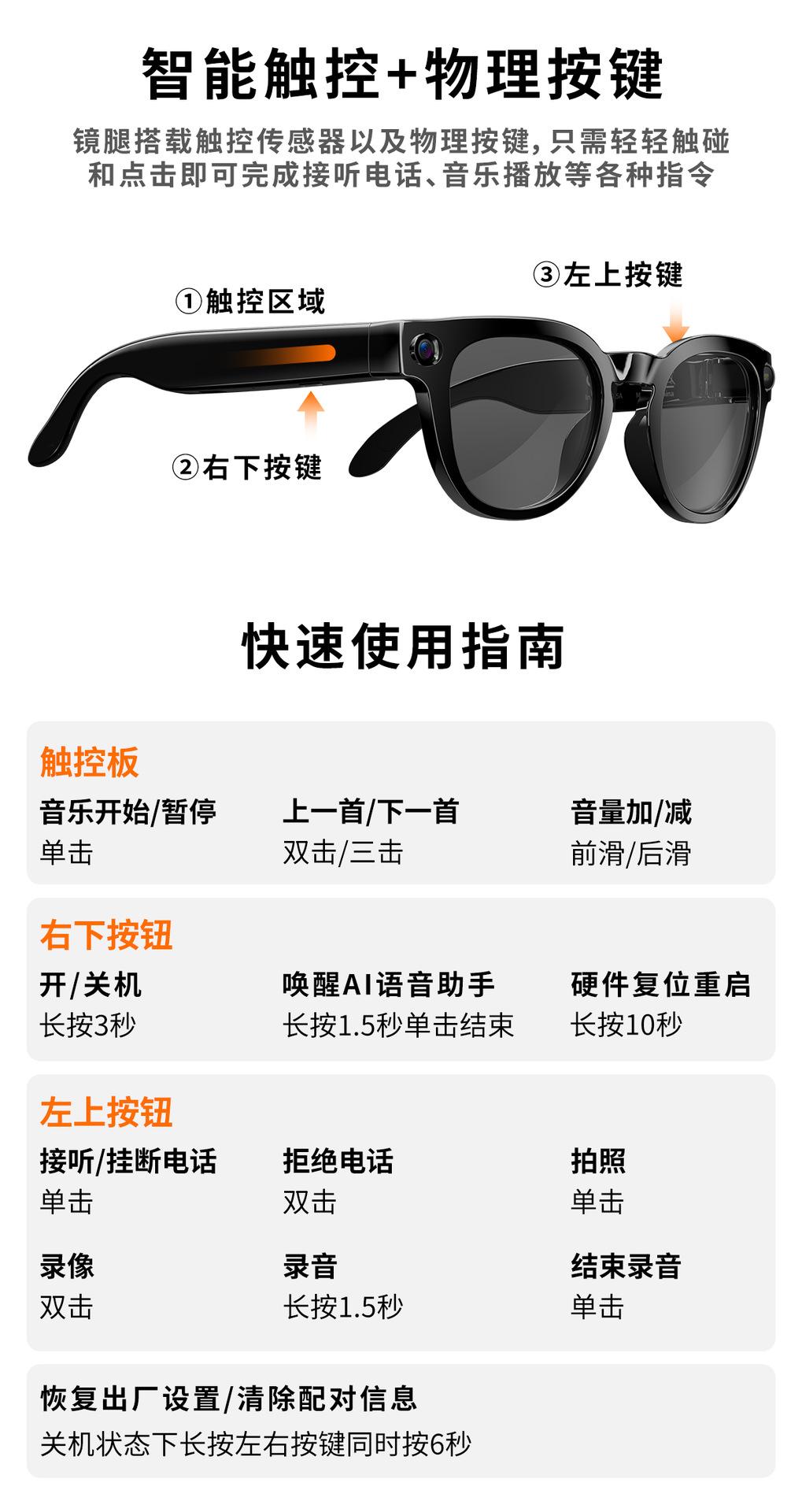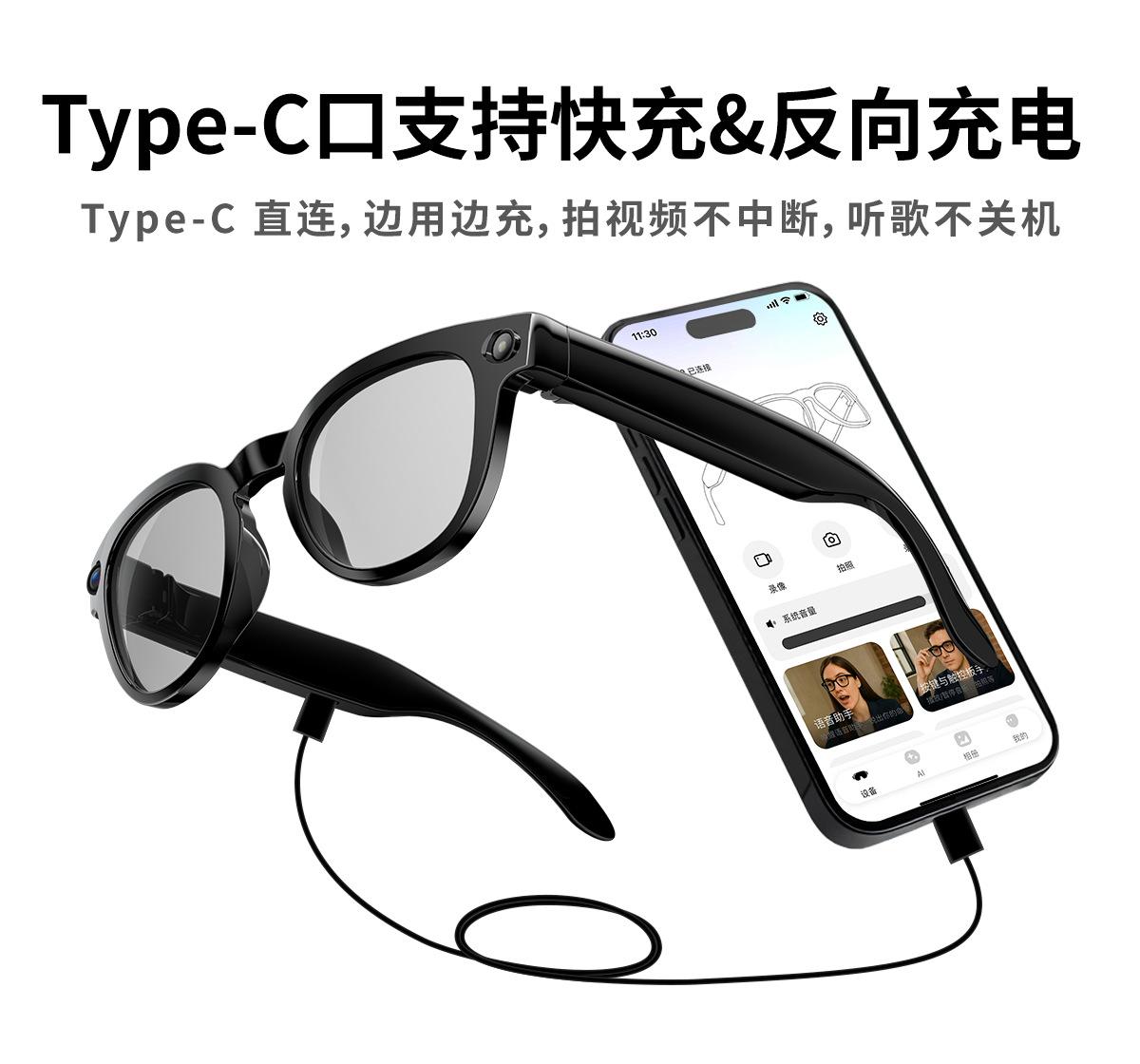 New typeC charging port Ai smart glasses with 8 million camera high-definition photo and video AI object recognition