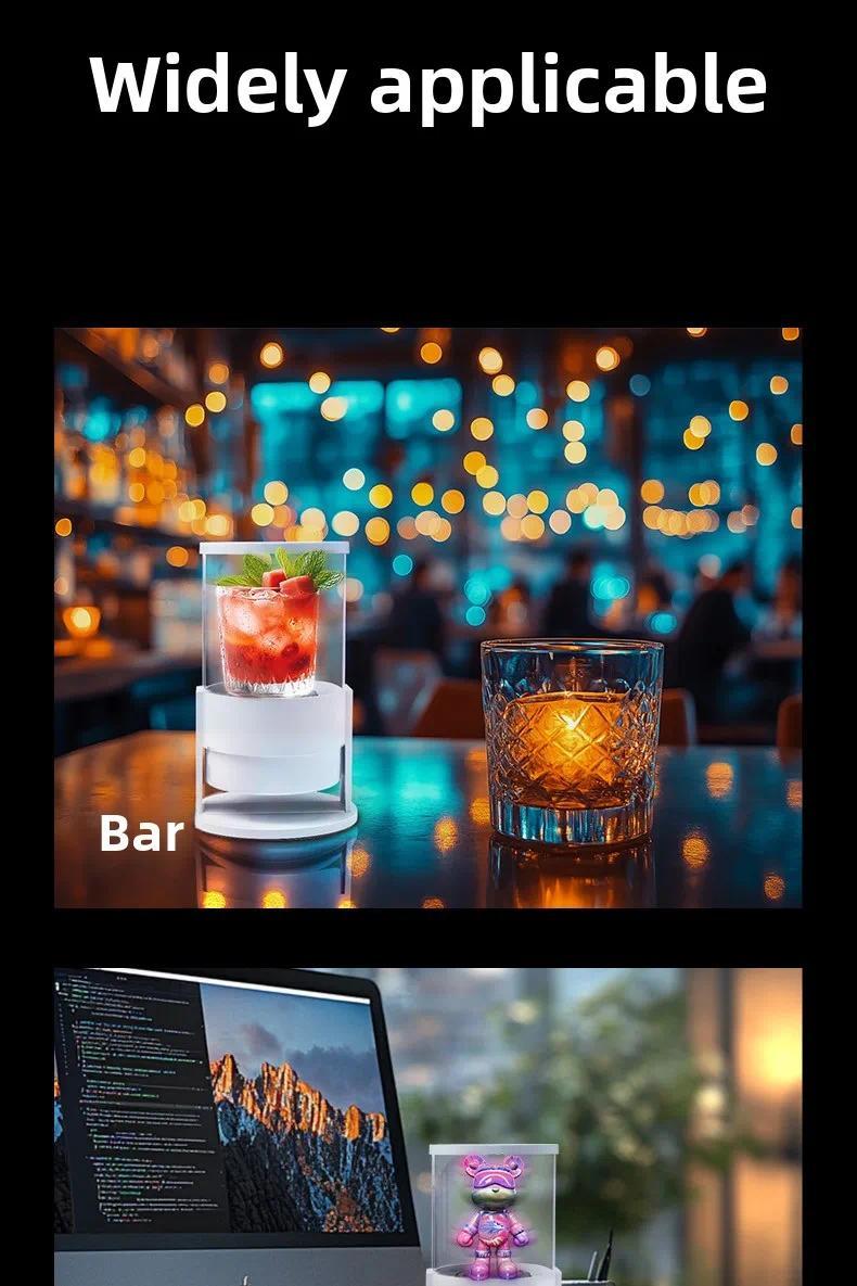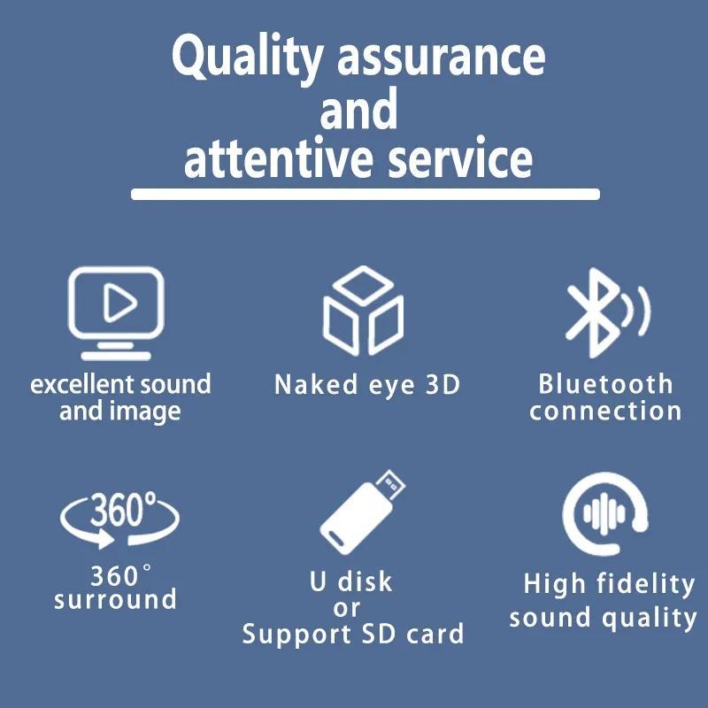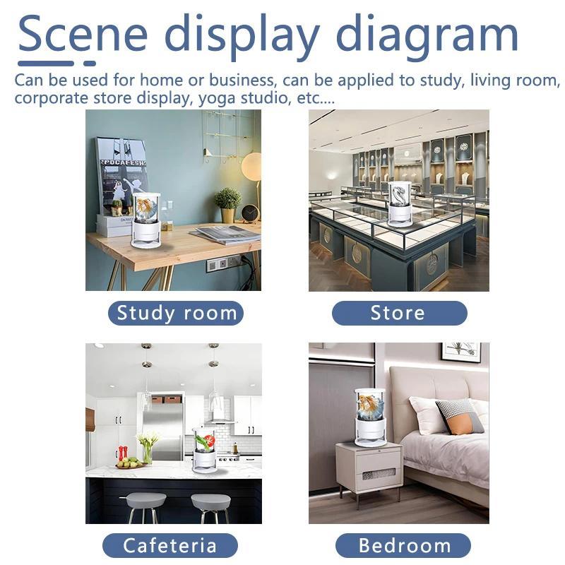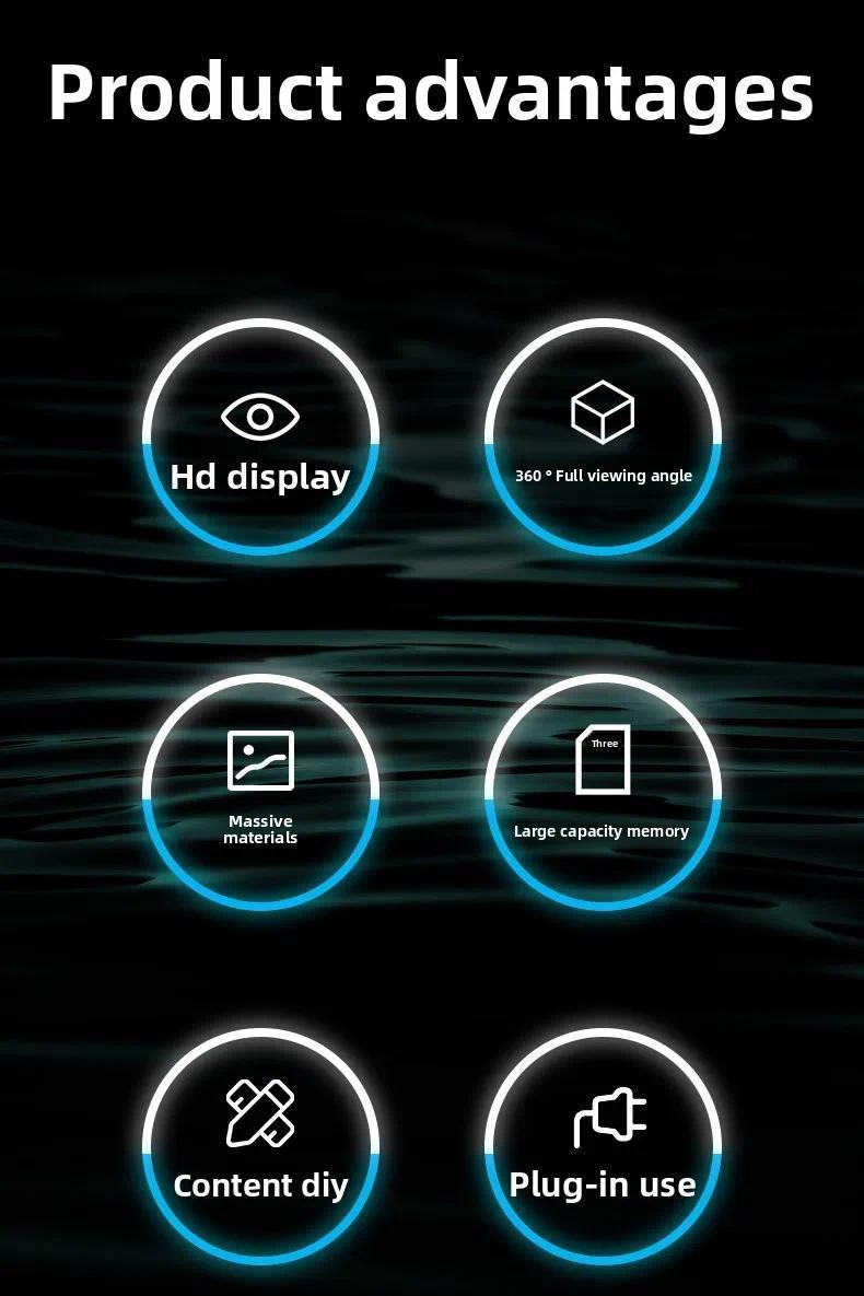 360 Degree Cylindrical Screen: This projector offers a naked eye 5D effect, supporting video and picture playback. Perfect for dynamic virtual figure, product, text, and logo displays. 📹