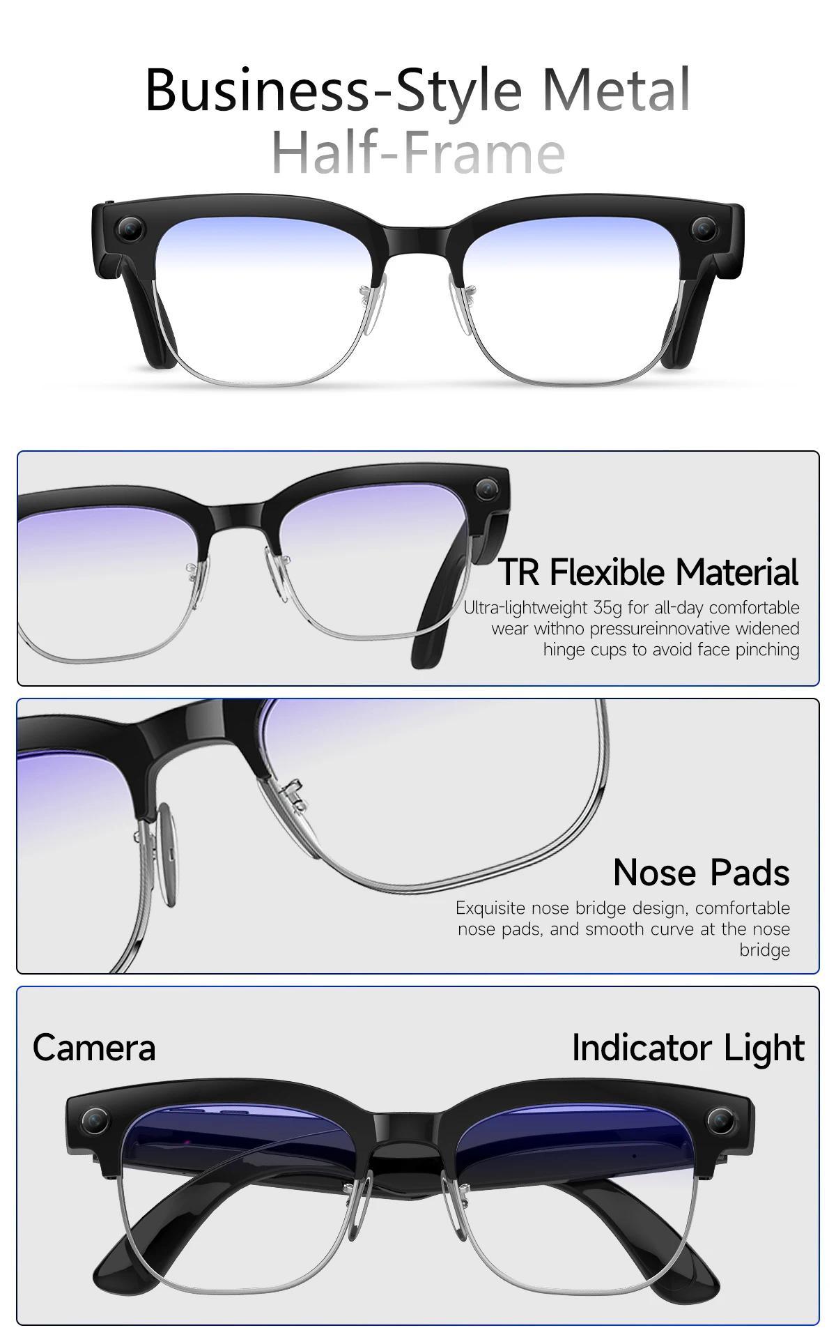 2026New AI Smart Glasses 120+Language Translation 800W Pixel Camera Video Music Player Call Business 8K Color Change Glasses Men