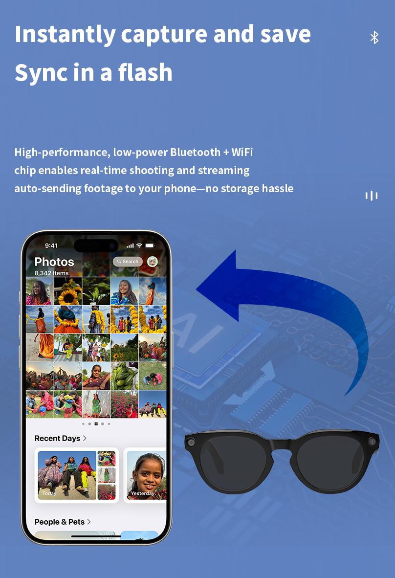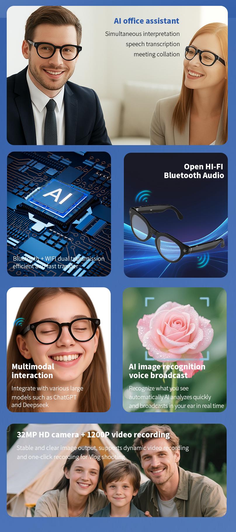 AI Smart Camera Glasses Bluetooth Call Voice Assisatant Sunglasses Outdoor Sports Headphone Eyeglasses Men Women Anti-blue Light